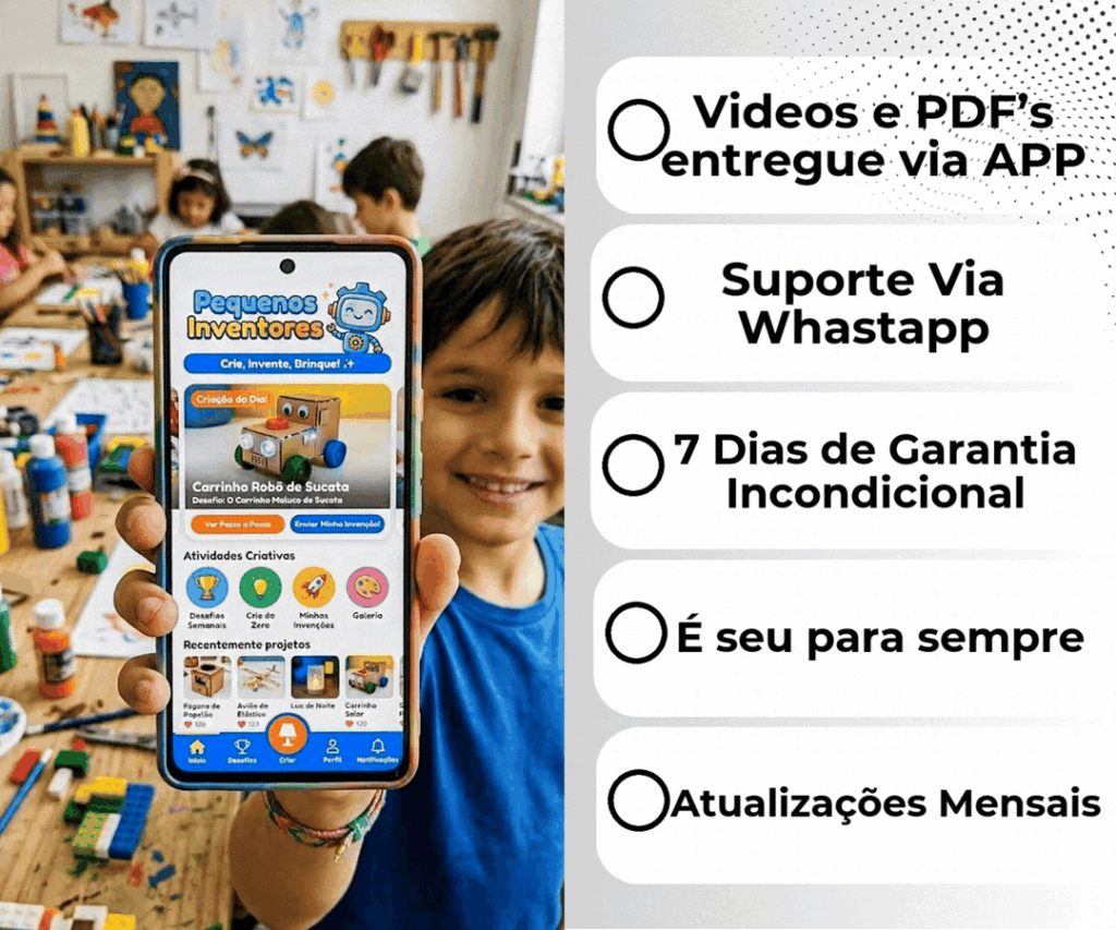 🎯 Feito especialmente para pais, mães e educadores que querem ver as crianças mais criativas, concentradas e felizes longe das telas e perto do mundo real.
